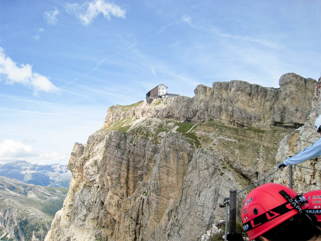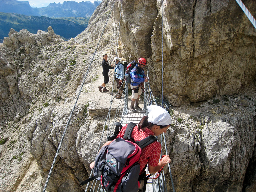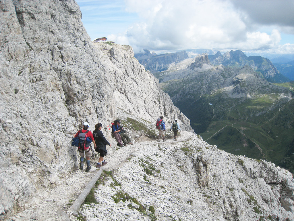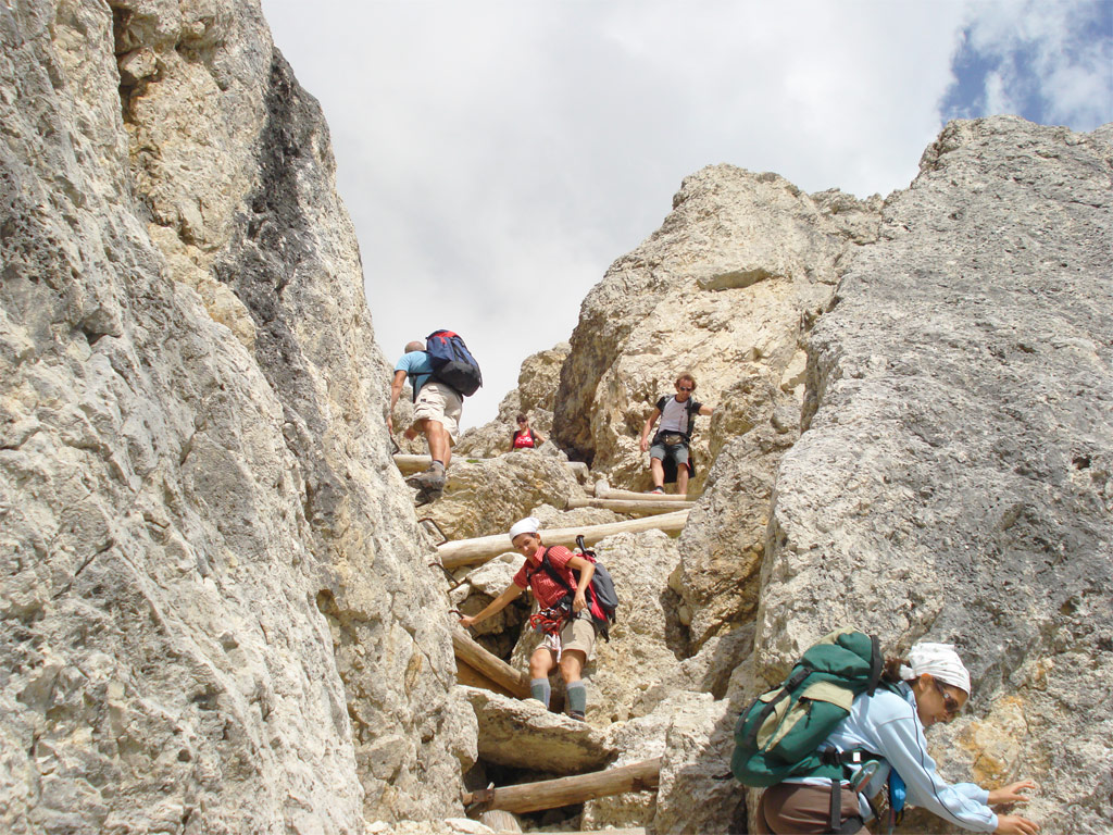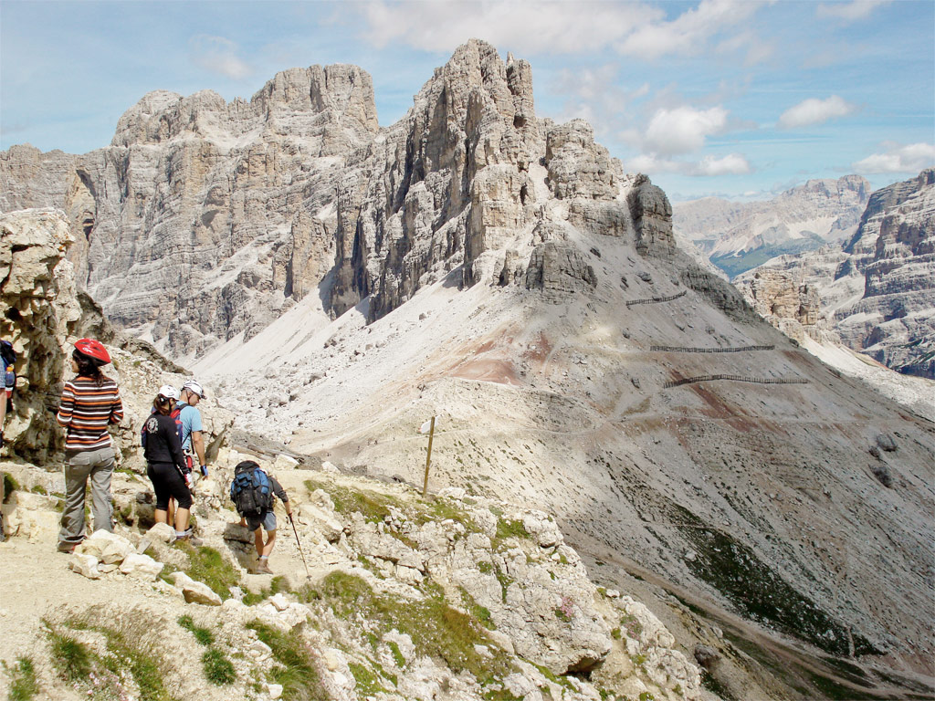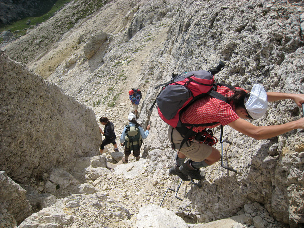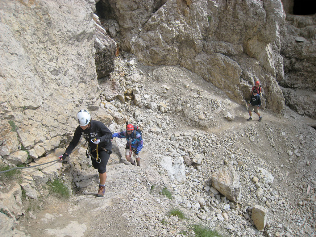 scendendo dal rifugio Lagazuoi dopo essere saliti con la funivia. Il percorso presenta diversi punti attrezzati con passamani