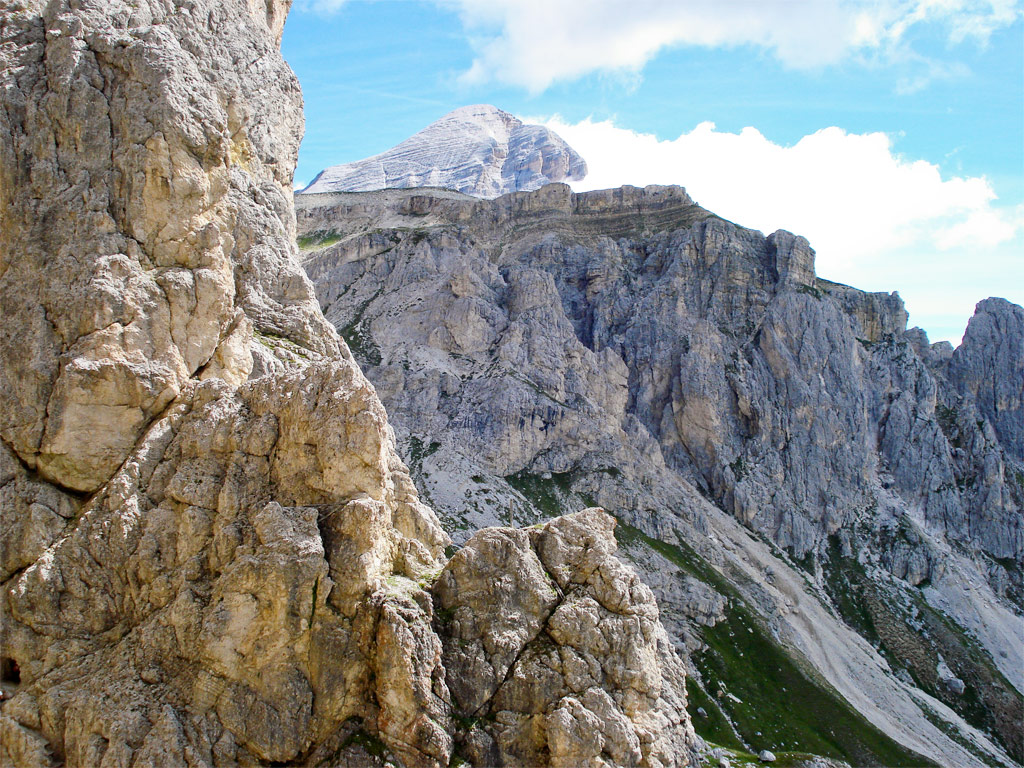suggestivo). Giunti sulla zona detritica sono presenti due tracce, una porta al forte Tre Sas verso il Sas de Stria, l’altro