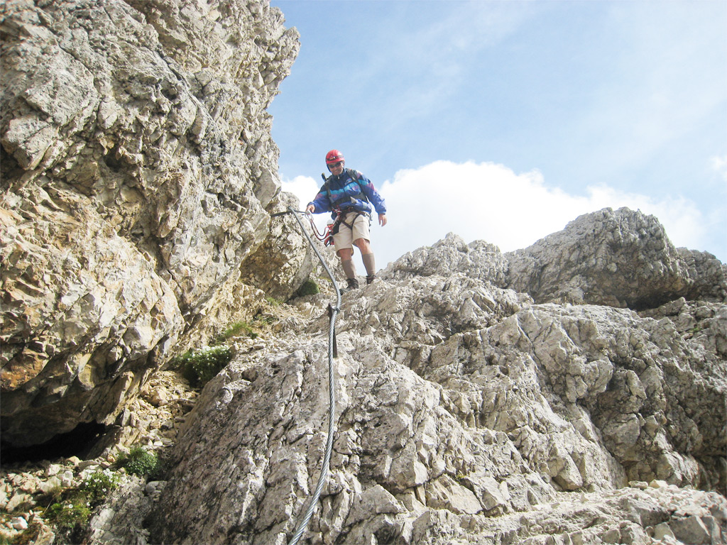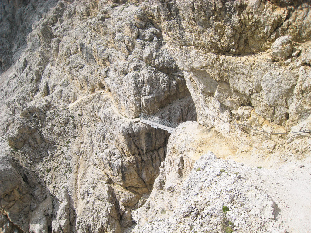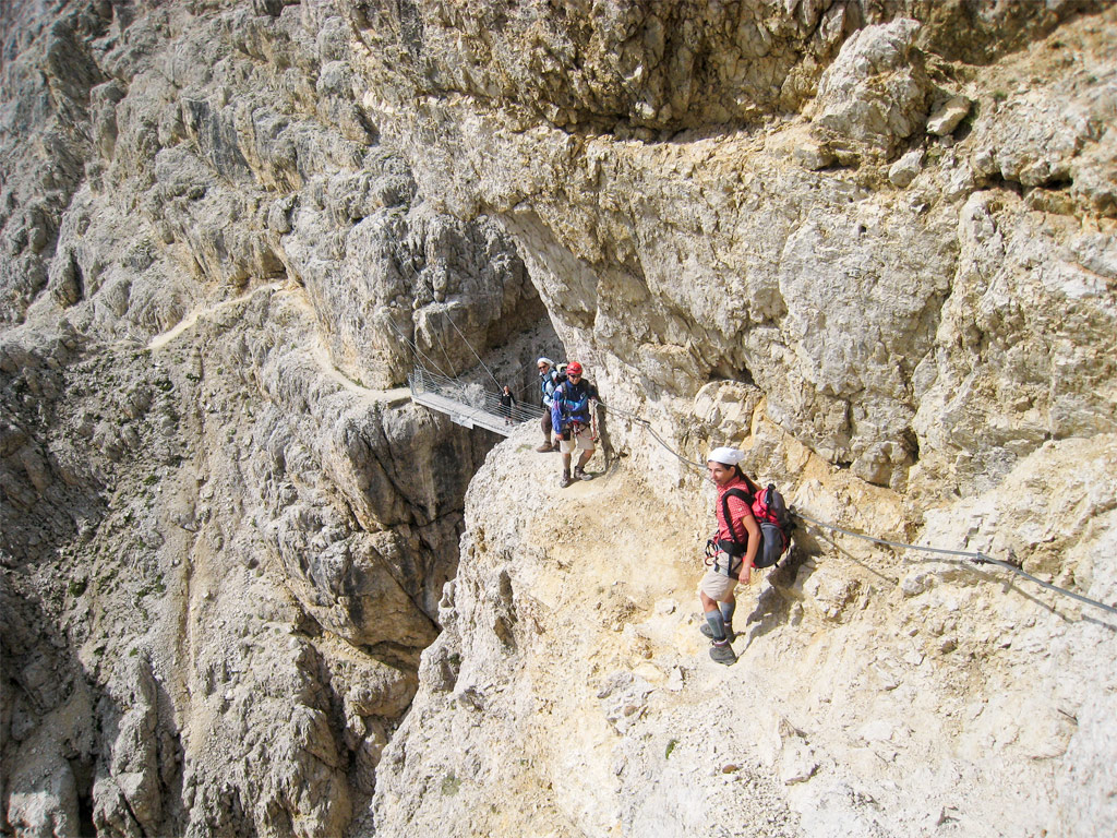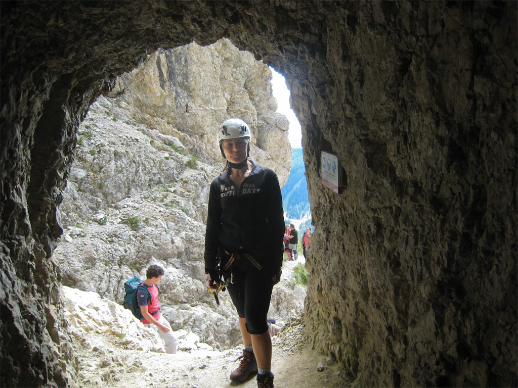 inizialmente la cengia che con percorso spettacolare, tra resti di postazioni e passaggi in galleria, ci porterà fino alla