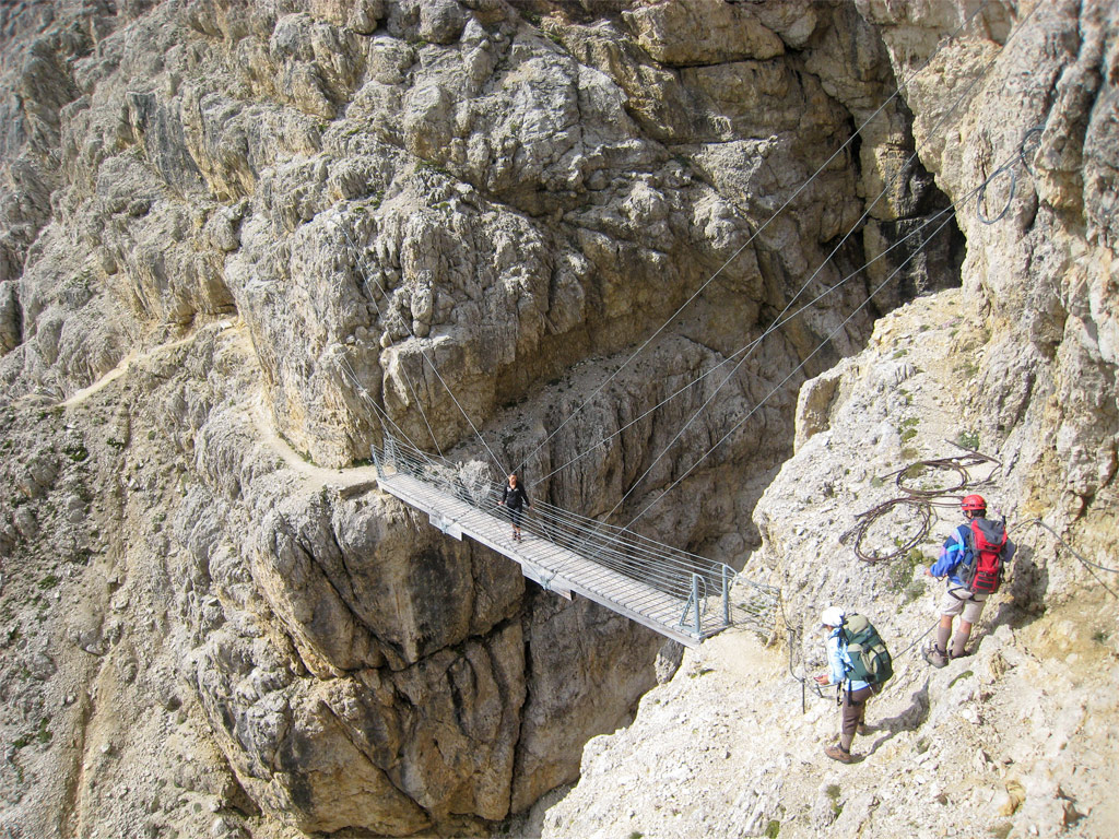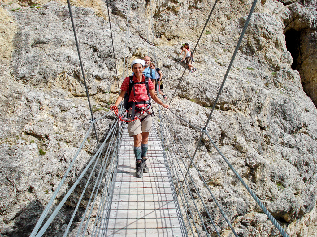 qualche pezzo attrezzato con cavi metallici, fino a superare un ponte ben solido ma sospeso a 40 metri dal suolo (davvero